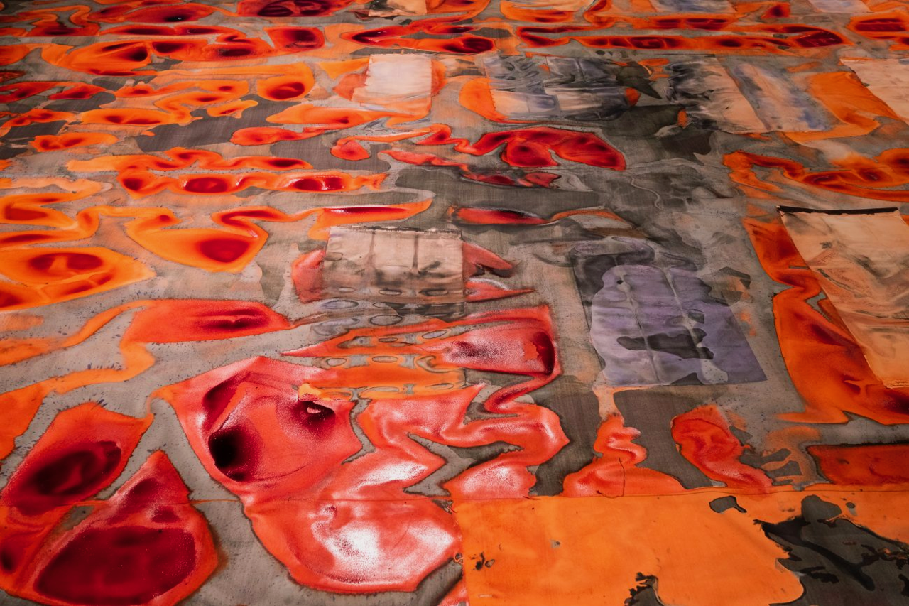 Images: Carmen Argote, Me at the Market, 2020. Process documentation and installation views at Visual Arts Center, University of Texas at Austin, January 24 – March 6, 2020. Courtesy of the artist. Carmen Argote, 2020. Protein bar oil transfer (process photo). Courtesy of the artist.